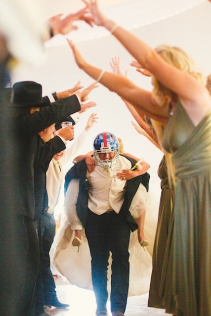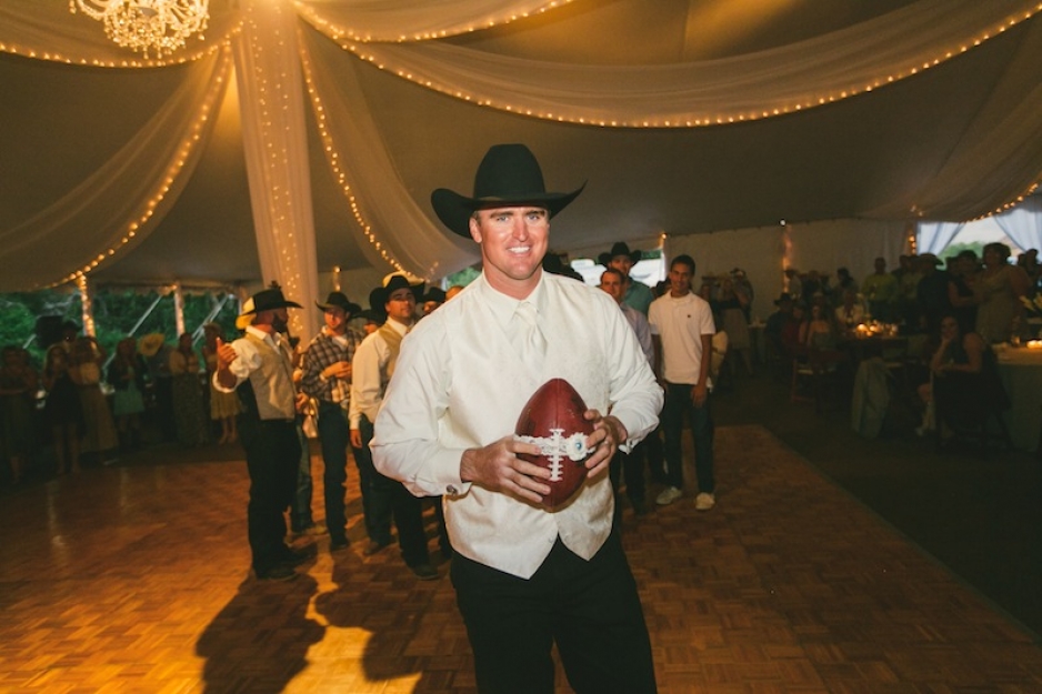 So when it came time for the big day to unite in matrimony, you could have guessed that the day would have a western flair. The groomsmen wore Wranglers and were fitted for custom boots by Justin Boots. Bear donned a custom cowboy hat by Greely Hat Works. And the kids even had their own corral with a bouncy house and sandbox. The happy couple rode off into the sunset, and are now in New Jersey as Bear prepares for the 2013 season with the New York Giants.